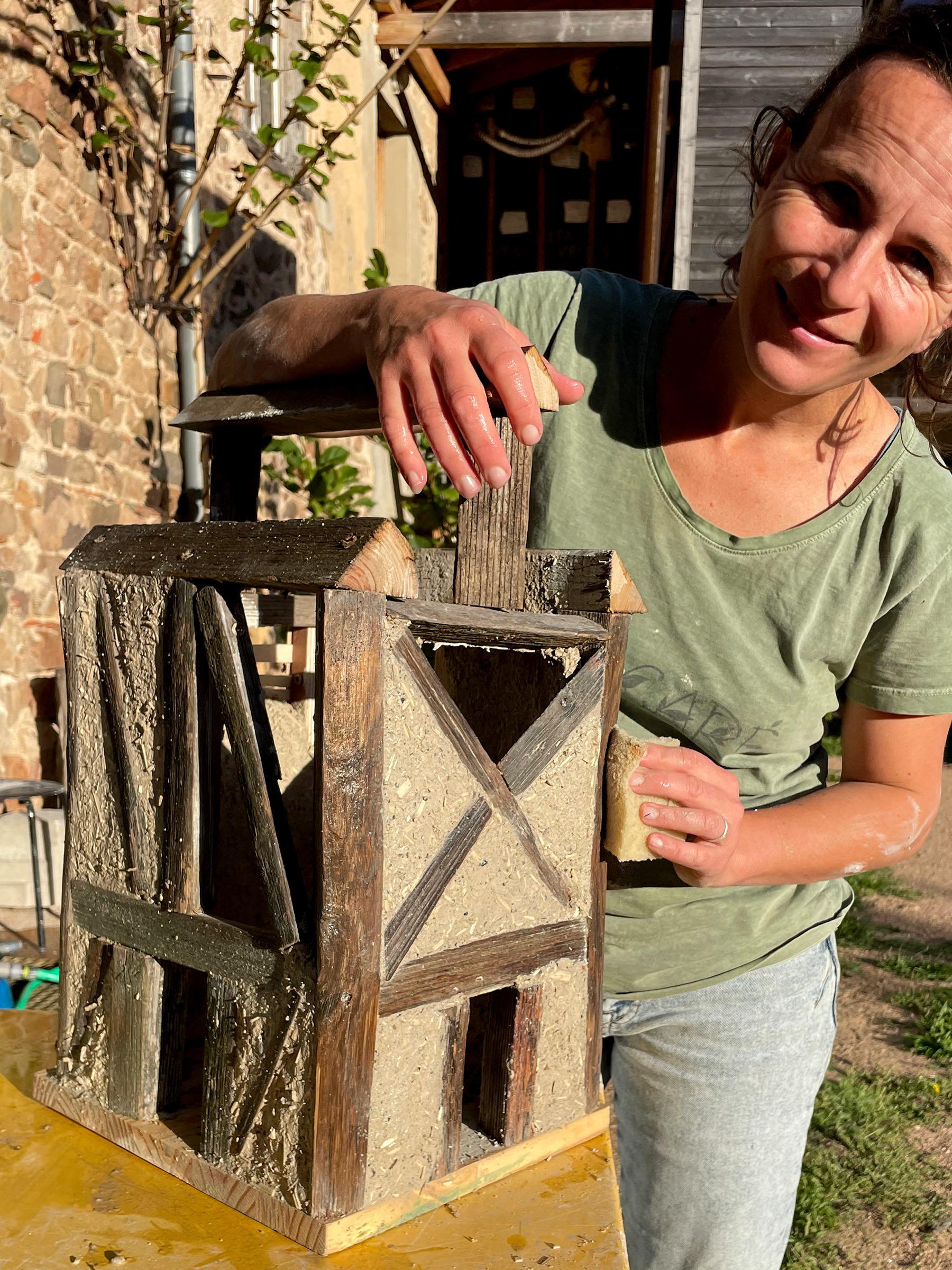 À partir de tasseaux de bois et de terre crue, nous allons expérimenter la technique du torchis et construire des maquettes de maisons inspirées de la maison à pans de bois.