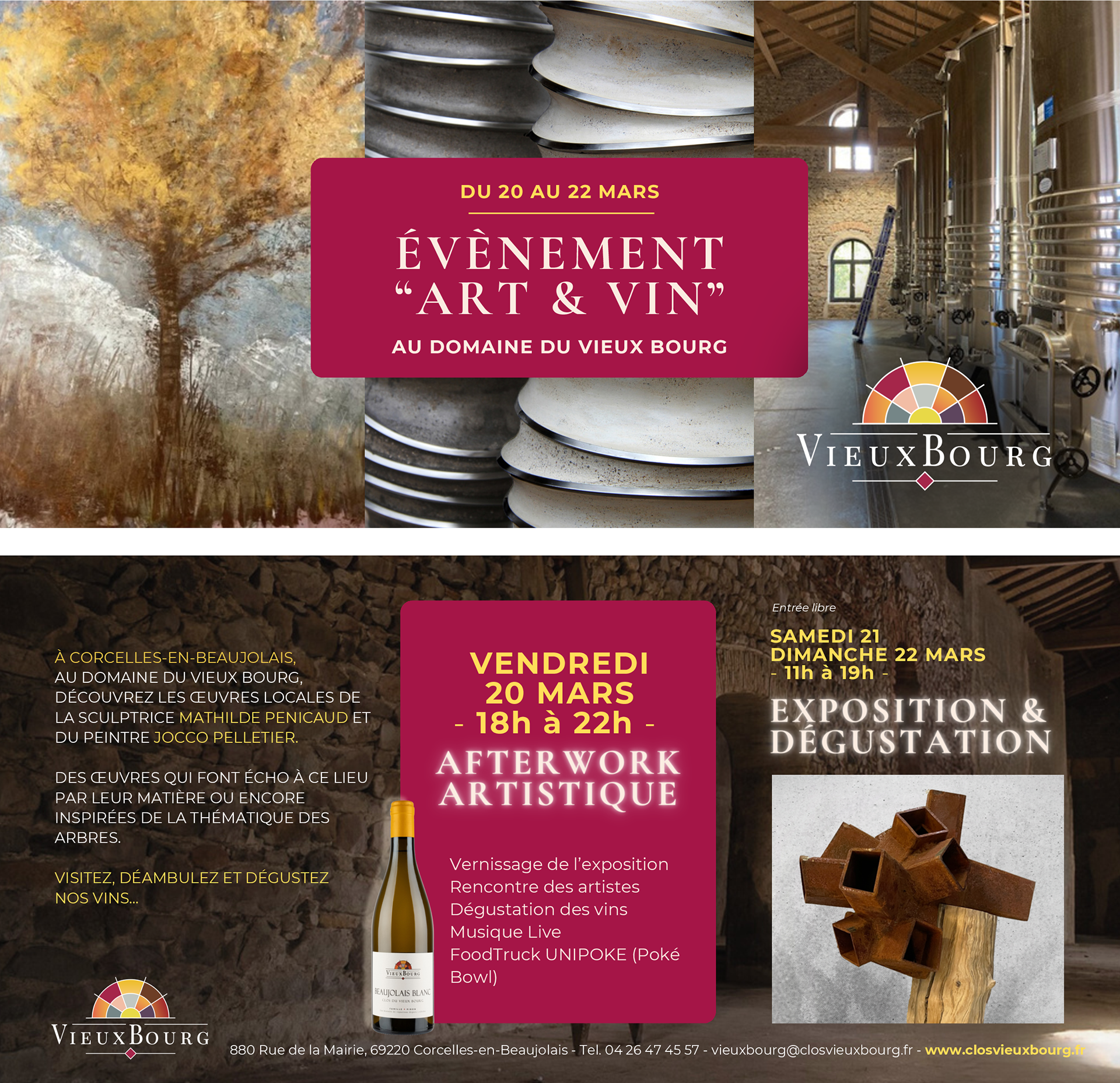 J'ai le grand plaisir d'exposer avec le peintre Jocco Pelletier à l'occasion de l'évènement "Art&Vin" au Domaine du Vieux Bourg à Corcelles-en-Beaujolais les 20,21&22 mars 2026.