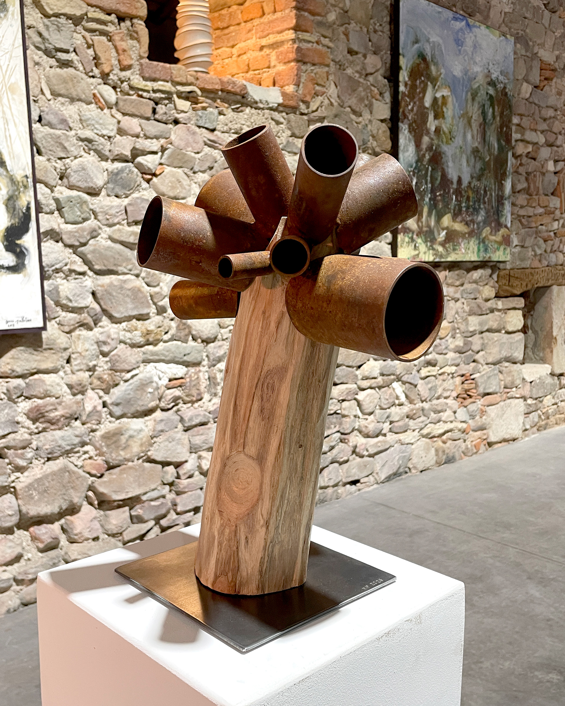 La série de sculptures « Éloge de la trogne », s'inspire des arbres têtards façonnés par les paysans, aussi puissants formellement que symboliquement. Cette recherche entre en résonance directe avec la démarche agroécologique du domaine viticole du Château de Javernand où je vis et travaille.