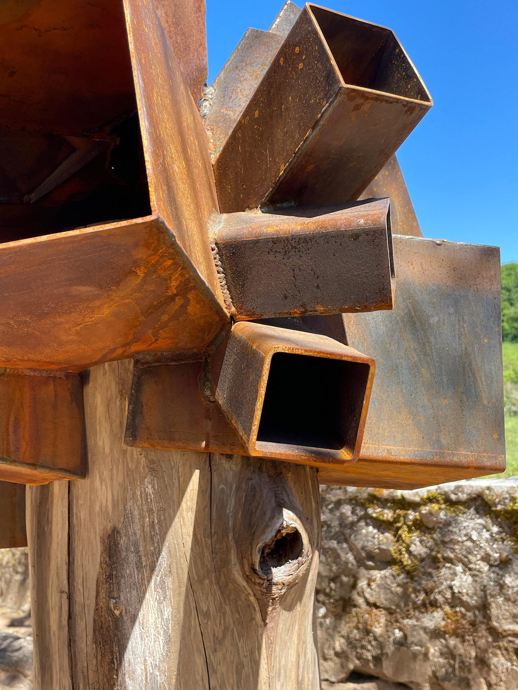 Éloge de la Trogne #3, acacia et acier corten, 140 x 80 x 80 cm , 2026 • Disponible