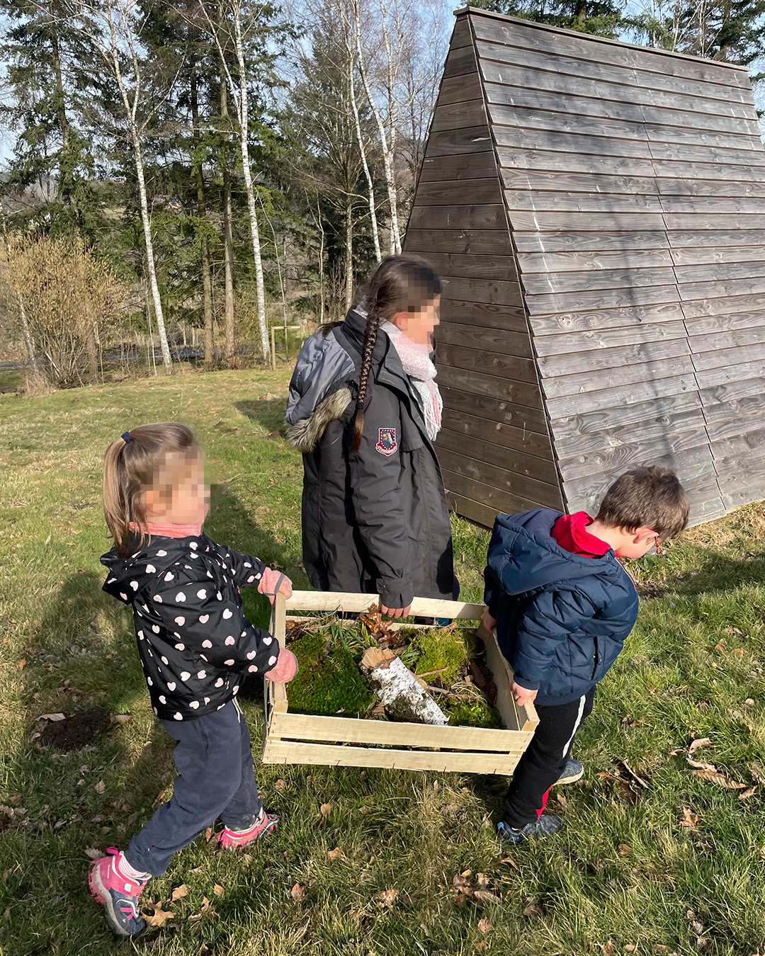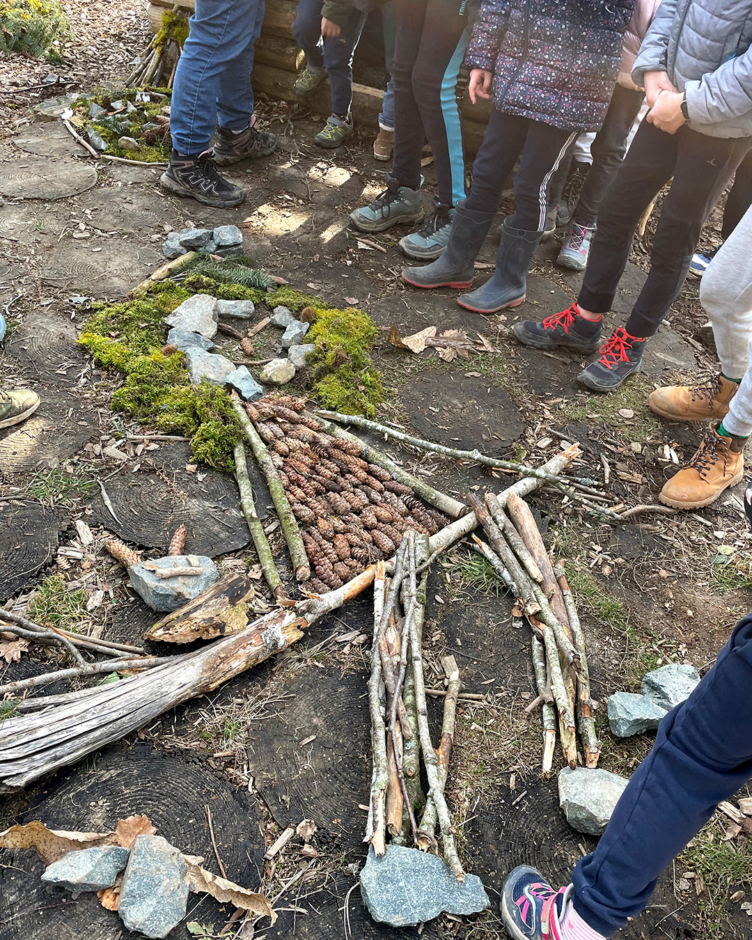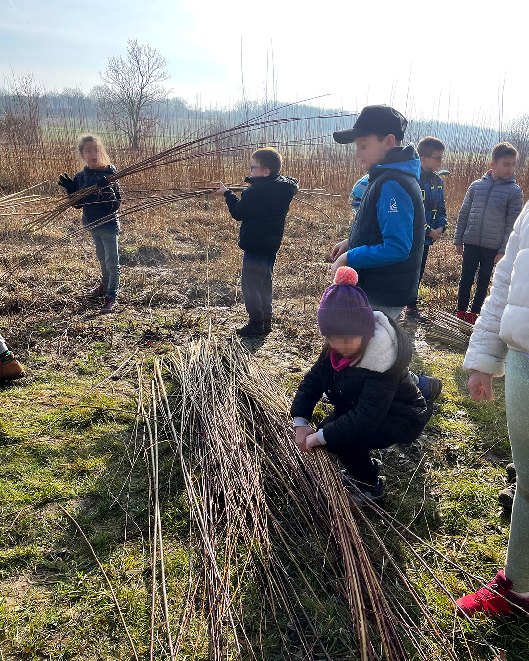 • Jeudi 20 février : Visite de l’oseraie de Saint-Albain, récolte des osiers qui serviront pour la fresque. Puis arrêt pique-nique au col de Durbize au pied de la sculpture monumentale "Chirouboam" de Mathilde et l'après-midi, ateliers land art et vannerie au Col de Crie.