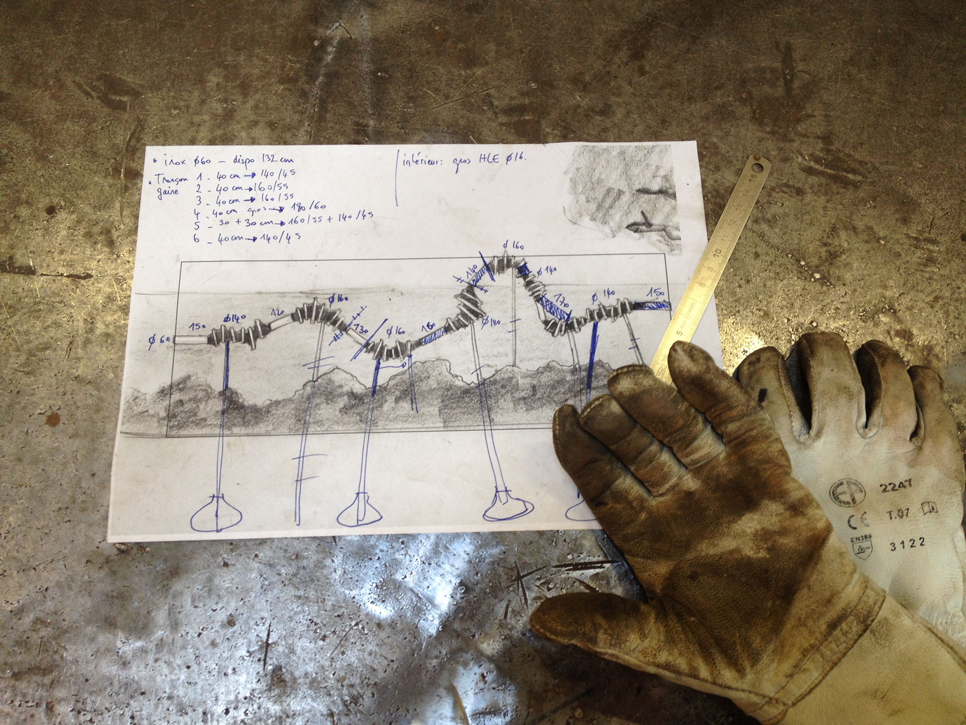 hêtre, inox et béton / beech, stainless, concrete 280 x 80 x H150 cm mai 2017