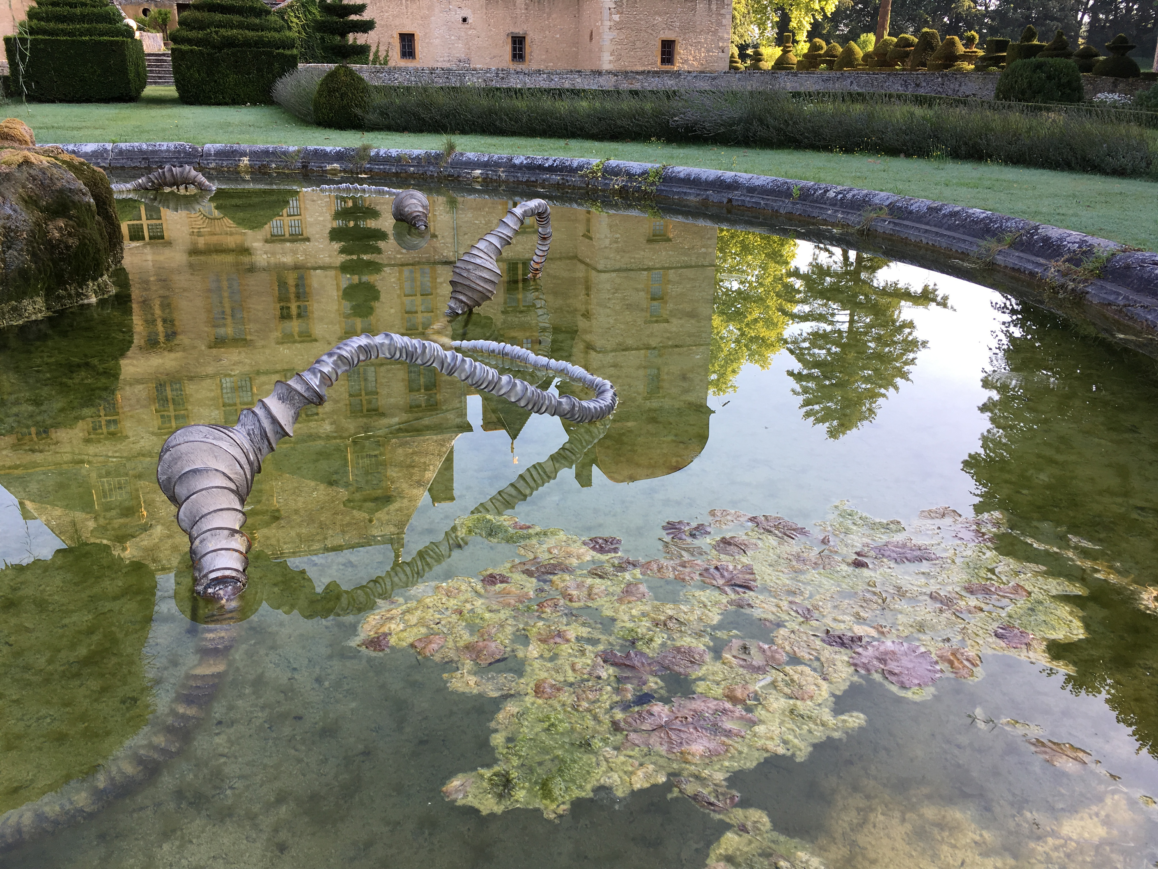 Installation au Château de Fléchères dans l'Ain, à l'occasion de la biennale de sculpture ArtFareins 2018.