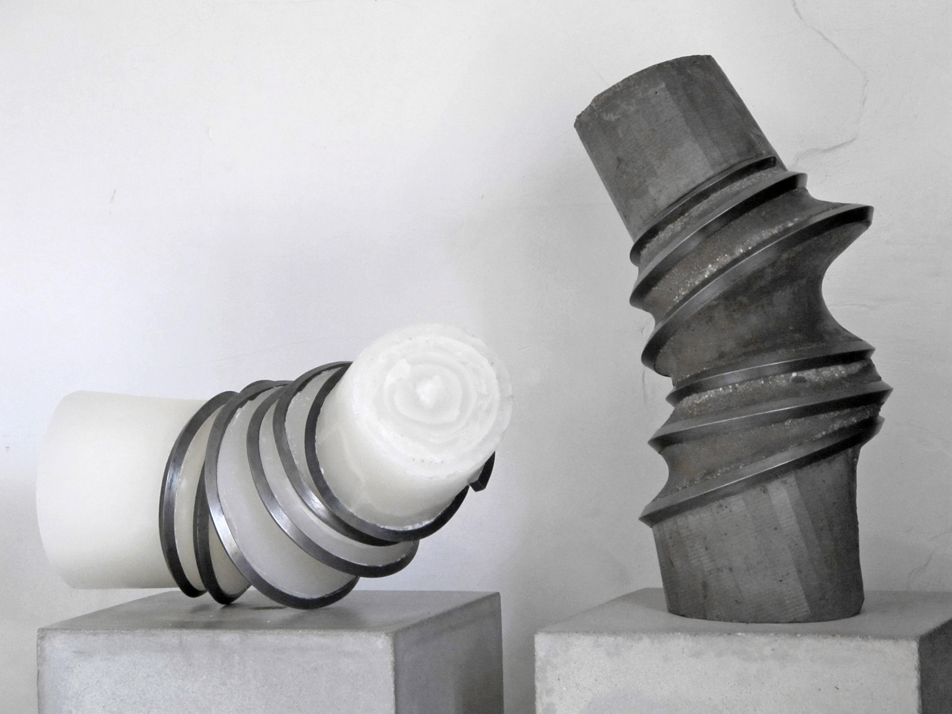 acier et paraffine // steel and wax acier et béton // steel and concrete environ 40cm