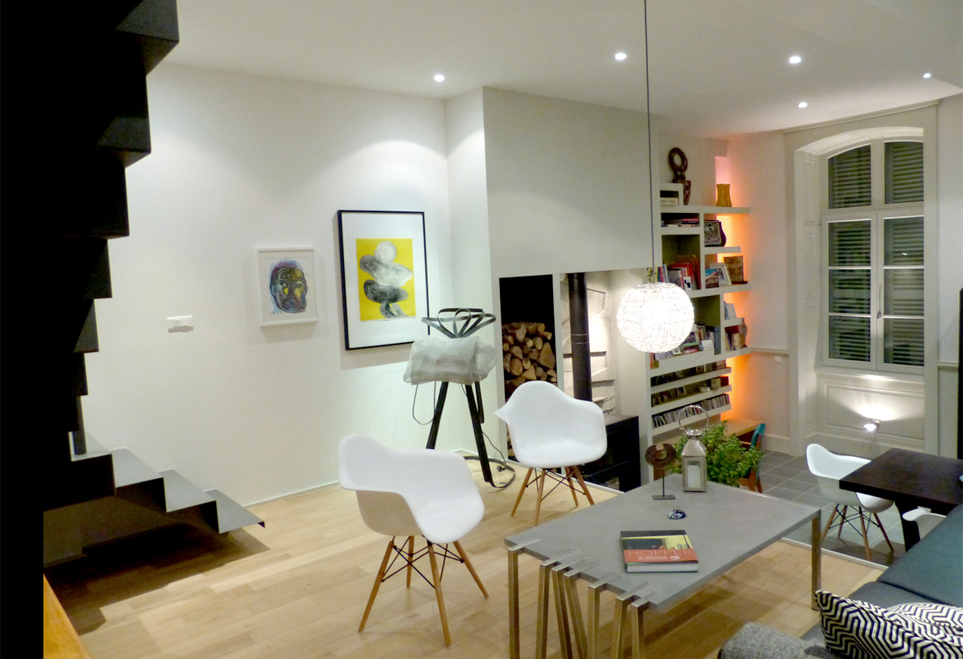 Paire de tables qui peuvent se défaire ou s'assembler 2 fois 53 x 50 x 50 cm inox et ductal édition de 8