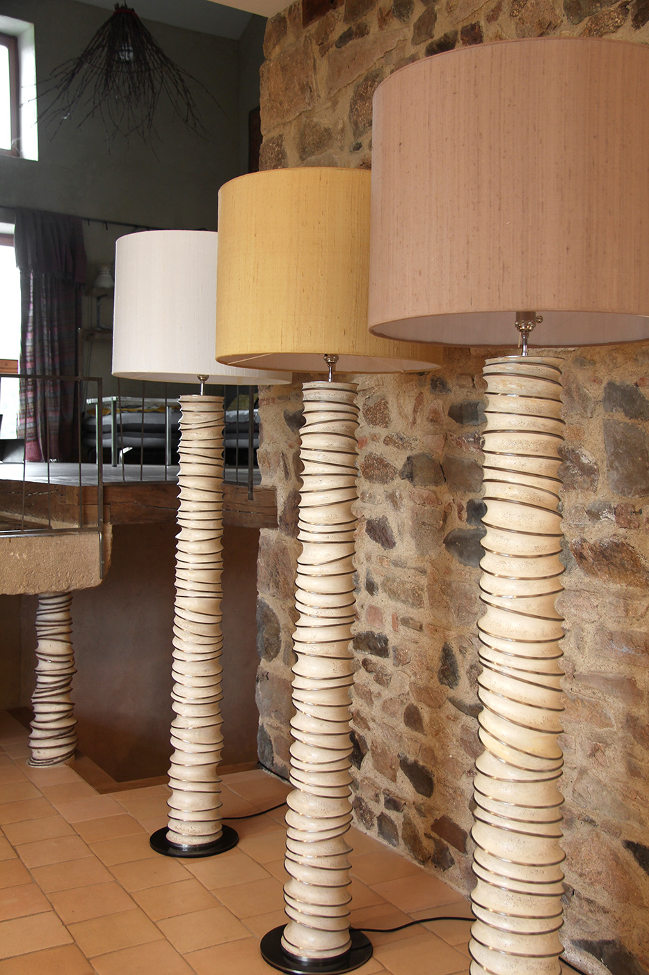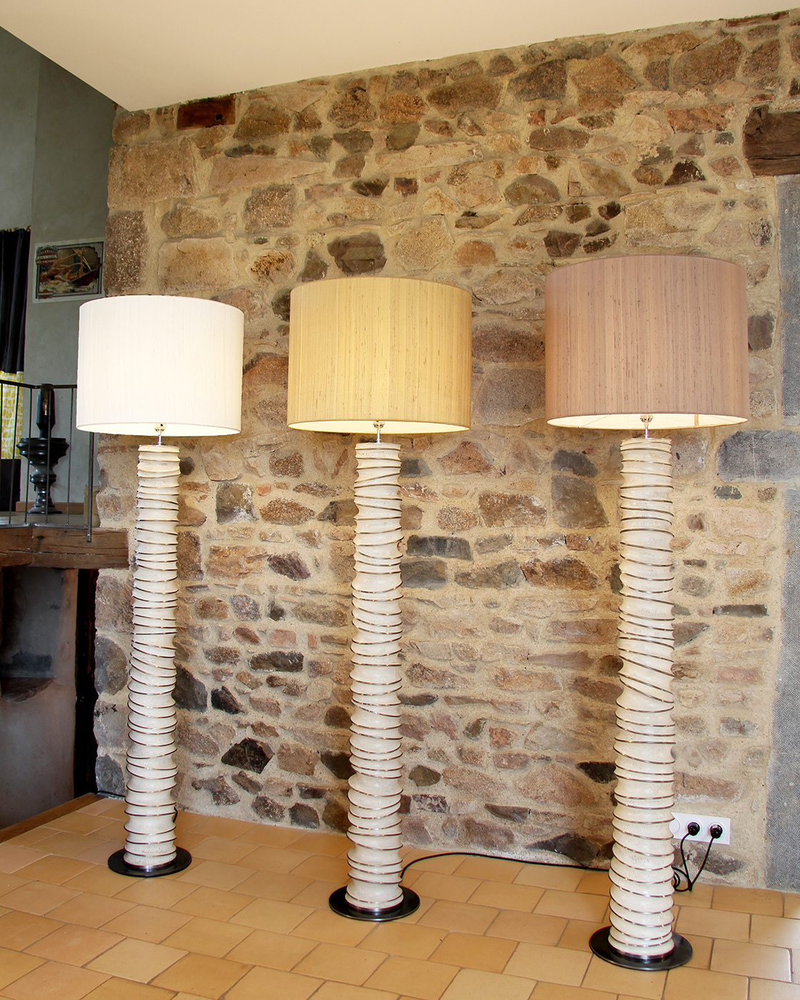Voici une déclinaison en lampadaire de mes lampes